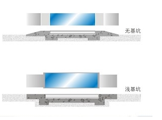 浅基坑式基础安装的秤体与地面齐平,其优点在于占用场地少,汽车上下秤较方便,但采用此形式时,须特别注意秤坑内的排水及干燥。