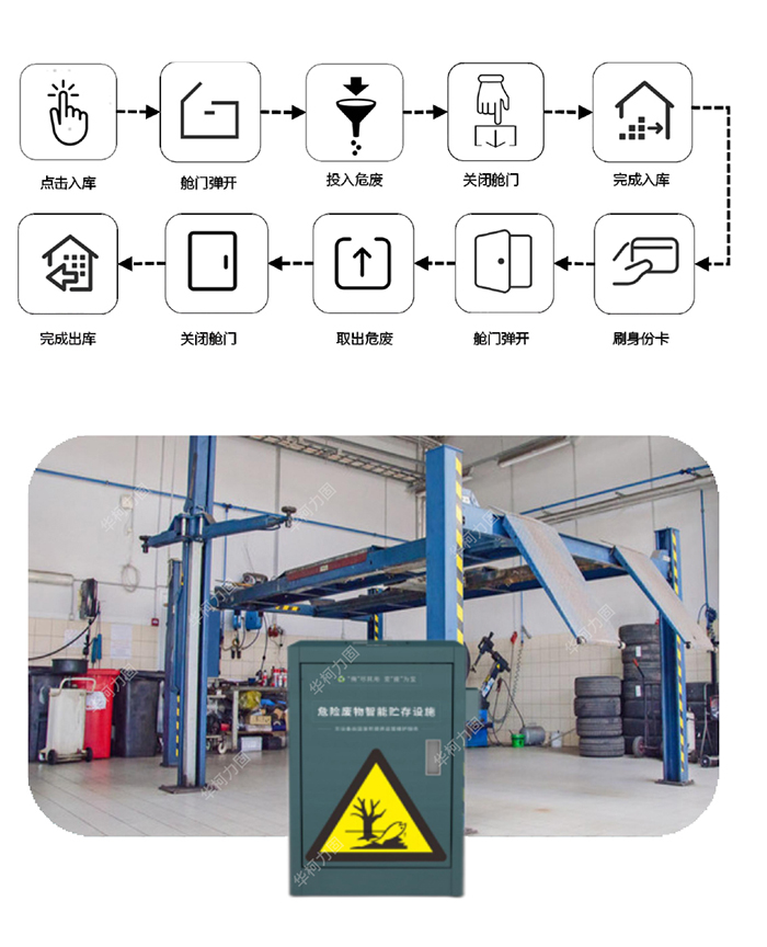 针对汽修/4S店在维修、保养或喷漆房等产生的危险废物,诸如废矿物油、废机油、液压油等液体类废物可选择“液废系列”危险废物智能贮存设施,设施容量根据店内产废量选择50/100/200L/1000L;若产生的固体废物(如废机油滤芯、废油壶等)量较多,可选择“固废系列”危险废物智能贮存设施,根据实际产废情况“液废系列”与“固废系列”可自由组合使用。